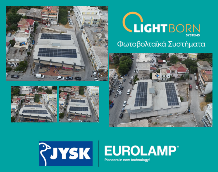Με δύο νέες φωτοβολταϊκές εγκαταστάσεις στα καταστήματα JYSK Πειραιάς και JYSK Περιστέρι, η LIGHTBORN SYSTEMS by EUROLAMP®, σε συνεργασία με την Mourtzilas Energy Solutions, αποδεικνύει έμπρακτα τη δυναμική της στον τομέα της πράσινης ενέργειας.